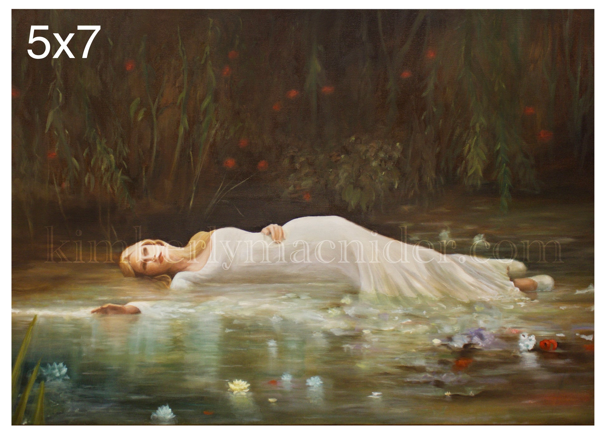 Print of ‘Ophelia’ painting on archival canvas textured art paper. Each size crops the original painting differently, please view the photos to see what they will look like. Prints come with 1/8”-1/4” white border.